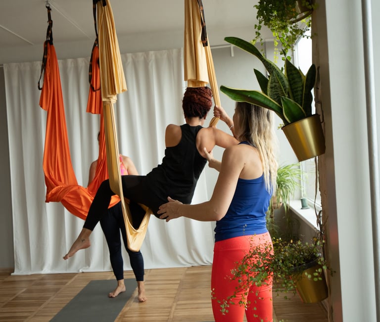 Qualified aerial yoga teachers, who are looking to expand their skillset and teaching opportunities by learning how to work with the yoga trapeze style of swing.